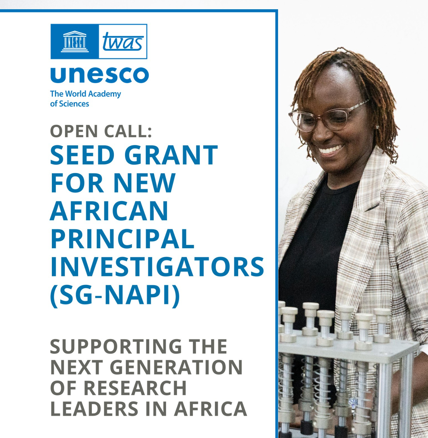 The Seed Grant for New African Principal Investigators (SG-NAPI) aims to support early-career scientists in Sub-Saharan Africa, with particular emphasis on Least Developed Countries (LDCs).